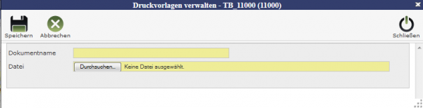 Es wird ein “Dokumentenname” vergeben und über den Button <Durchsuchen…> wird die Datei mit der Druckvorlage gesucht und ausgewählt.
