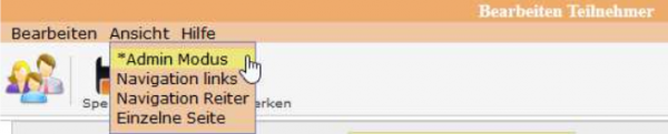 Mit einem Klick auf Admin-Modus wird der Admin-Modus eingeschaltet. Ein eingeschalteter Admin-Modus wird angezeigt mit einem Sternchen am Begriff.