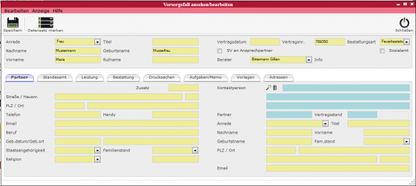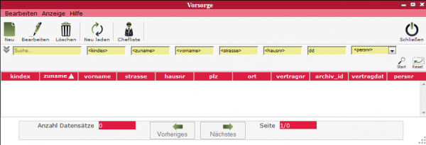 Nach dem Speichern der ersten Eingaben öffnet sich ein neues Fenster, in welchem die Angaben vervollständigt werden könenn. Um einen bereits vorhandenen Vorsorgefall zu bearbeiten muss er vorerst per Doppelklick ausgewählt werden. Es folgt das selbe Fenster „Vorsorgefall ansehen/bearbeiten“.