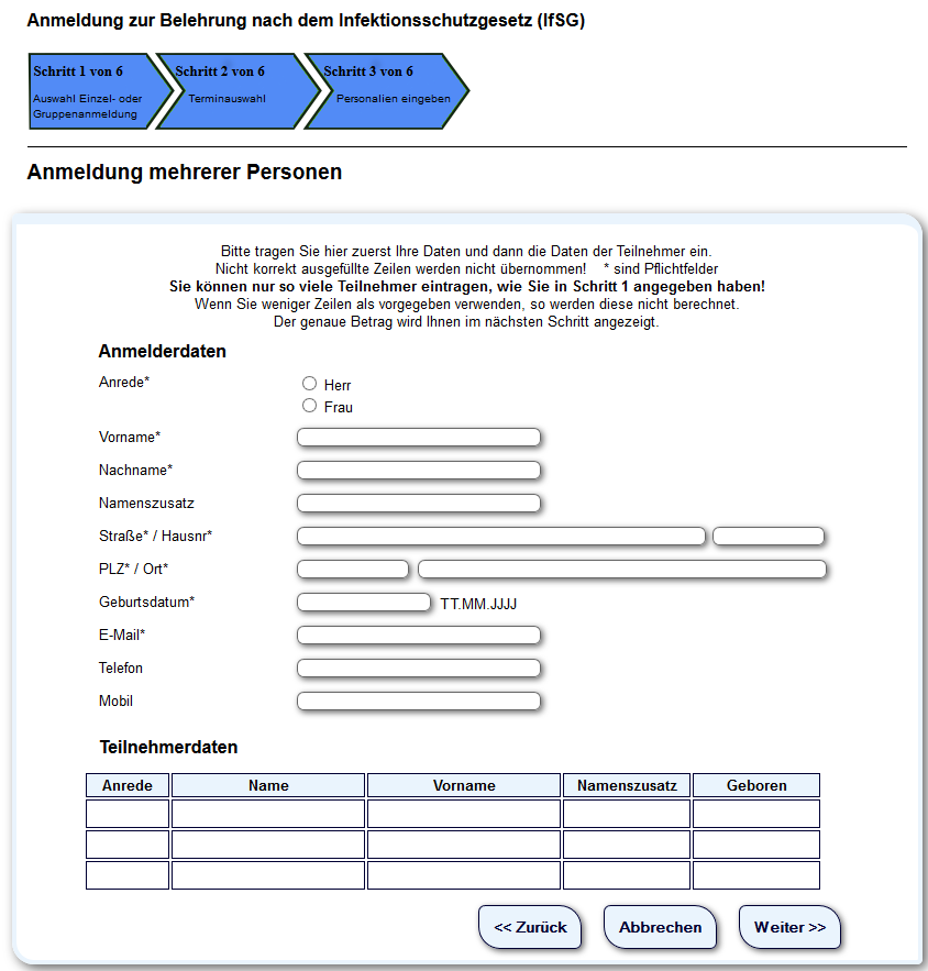 - Mehrere Personen anmelden